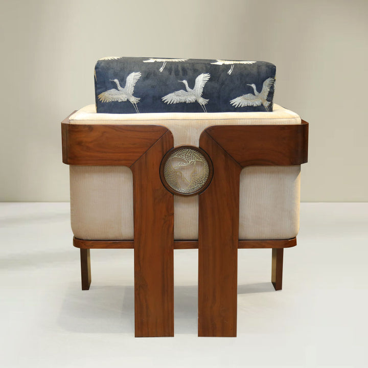 A statement Chair featuring a delicate brass pattern of entwined birds at the back takes design cues from our Eden Collection. The birds represent harmony and peace. This chair, made in solid Sheesham wood has a sophisticated appeal and can easily amp up the look of any space be it formal or informal.